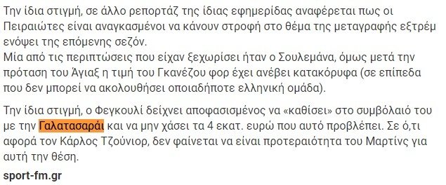 Öte yandan Olympiakoslu kurmayların, Feghouli'nin aldığı yaklaşık 4 milyon euroyu bulan maaşını karşılayamayacağı, oyuncunun bu rakamda indirime gitmesi halinde masaya oturulabileceği kaydedildi.