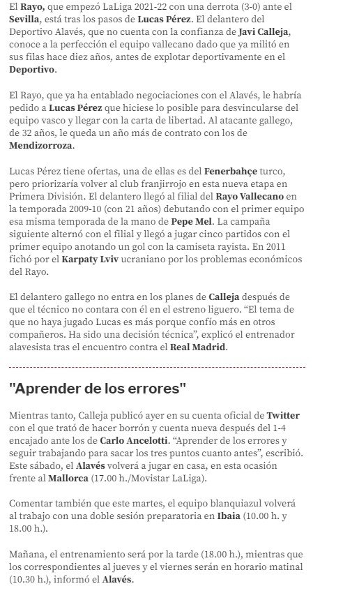 Haberin detaylarında Perez'in Deportivo Alaves'te kariyerine devam etmek istemediği ve oyuncunun takımıyla olan sözleşmesini feshedeceği ifade edildi.