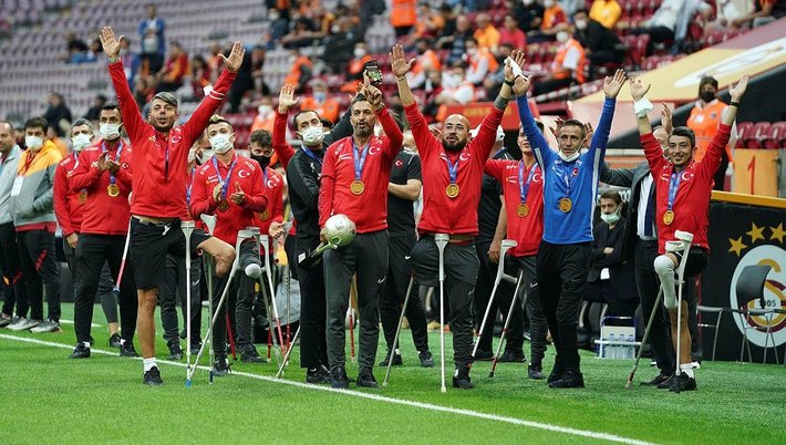 Avrupa şampiyonu Ampute Futbol Milli Takımı, Süper Lig'in 7. haftasında oynanan Galatasaray - Göztepe maçında sarı-kırmızılıların konuğu olarak Ali Sami Yen Spor Kompleksi'ne geldi. Kupa ile taraftarları selamlayan milli futbolcular ve teknik ekibe, Galatasaray Kulübü başarılardan dolayı plaket verdi. Plaketi Galatasaray İkinci Başkanı Ali Polat Bengiserp takdim etti. Sarı-kırmızılı taraftarlar, milli futbolculara 'Türkiye sizinle gurur duyuyor' tezahüratları yaparak destek verdi.