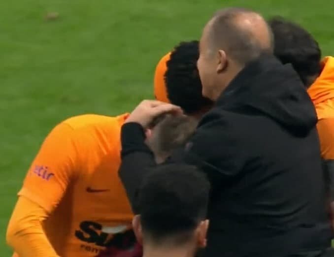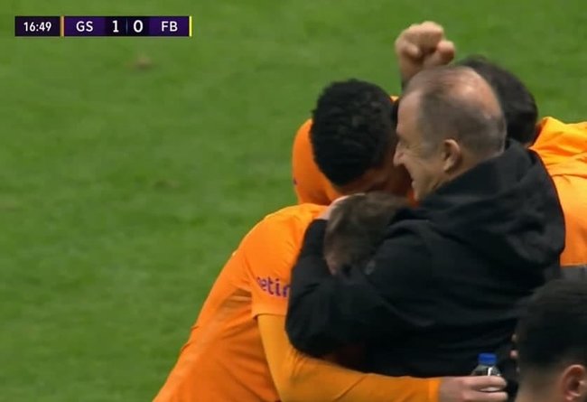 Galatasaray - Fenerbahçe derbisinde Kerem Aktürkoğlu, gol perdesini açarak skoru 1-0'a getirirken, sevincini hocası Fatih Terim ile paylaştı.