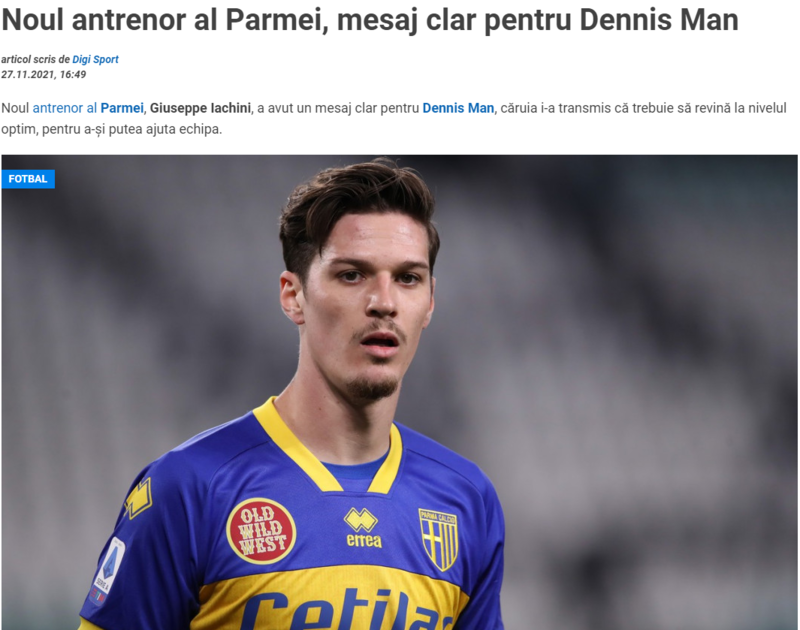 Parma'da yeteri kadar süre bulamayan ve takımdan ayrılacağı konuşulan Dennis Man ile ilgili, yeni teknik direktörü Giuseppe Iachini açıklamalarda bulundu.