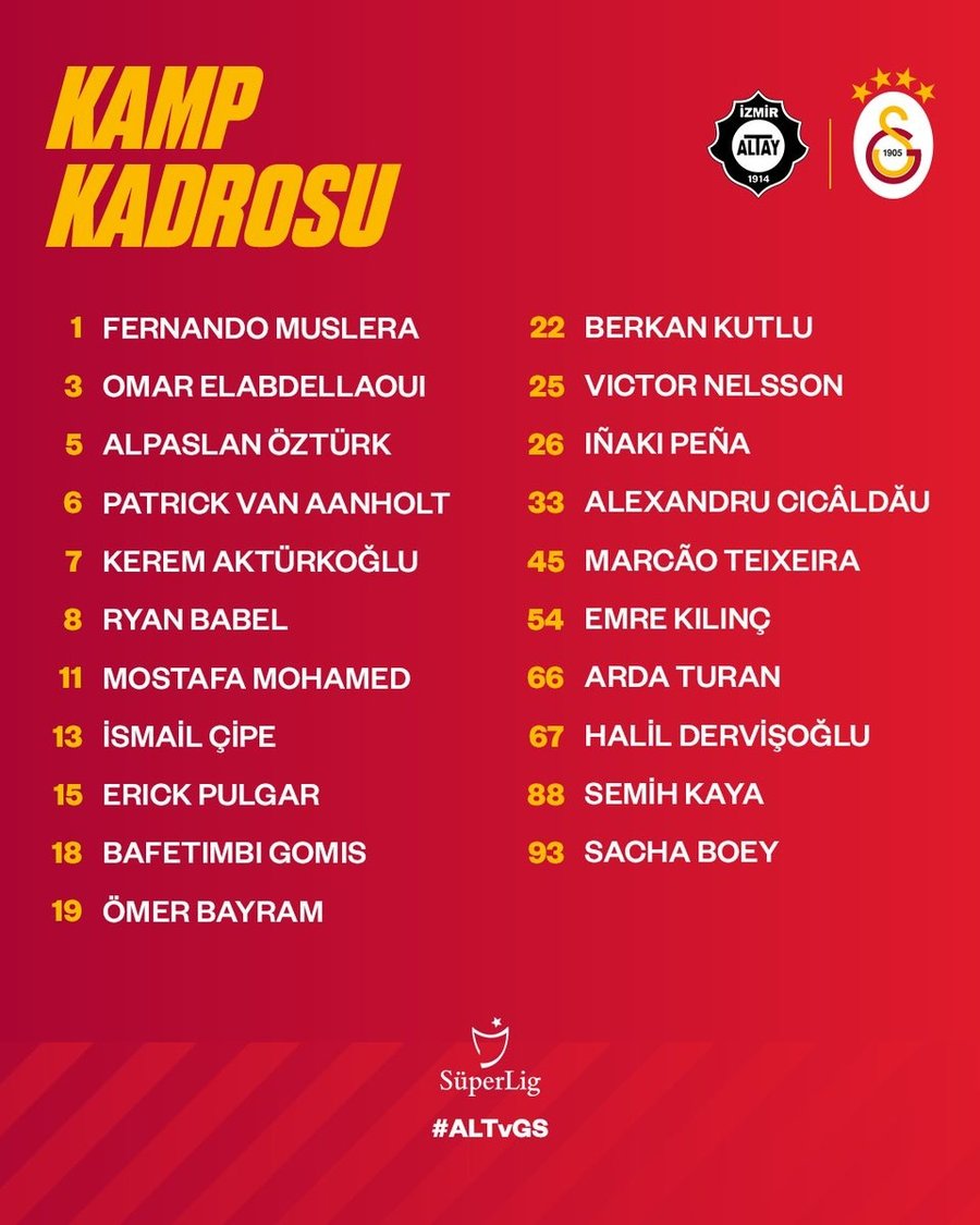 Karşılaşma için bugün İzmir'e gidecek Galatasaray'ın, kamp kadrosunda şu futbolcular bulunuyor: