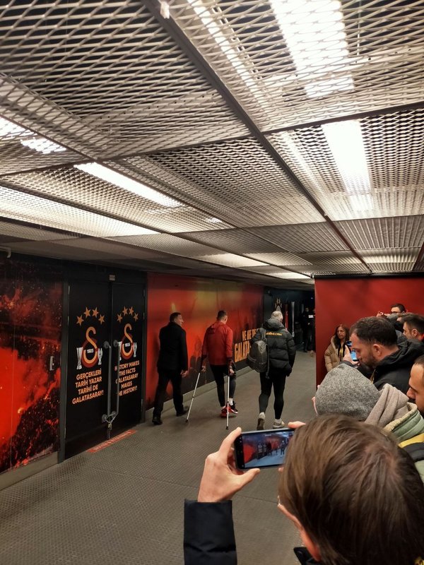 Sarı kırmızılıların Uruguaylı file bekçisi, Trabzonspor maçı sonrası stattan koltuk değnekleriyle ayrıldı.