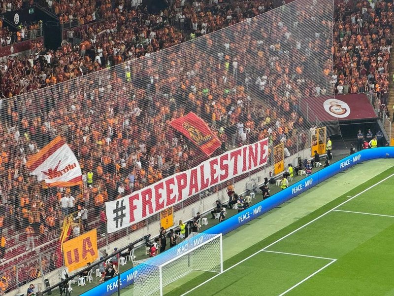 G.Saray taraftarlarının açtığı diğer bir diğer pankartta ise "Özgür Filistin" ifadesi yer aldı.