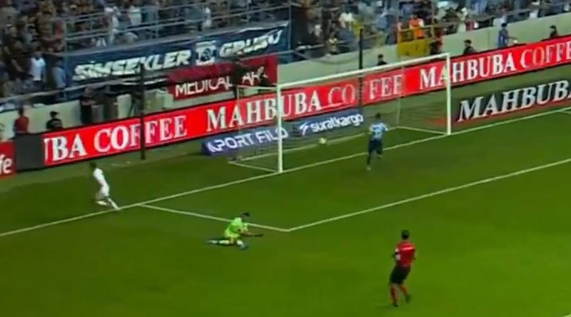 Mücadelenin 9. dakikasında Adana Demirspor savunmasının arkasına atılan topta genç kaleci Deniz büyük bir hata yaptı. Sarı kırmızılıların yıldızı Kerem Aktürkoğlu fırsatı değerlendirdi ve takımını öne geçirdi.