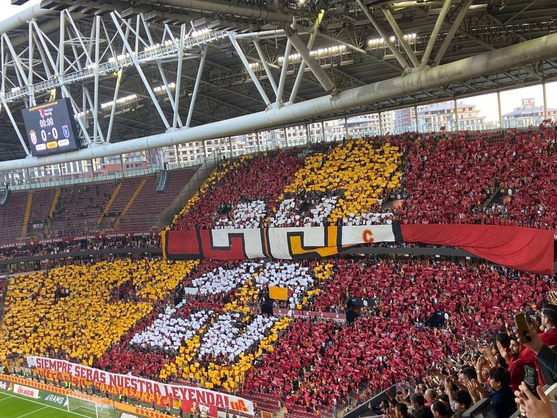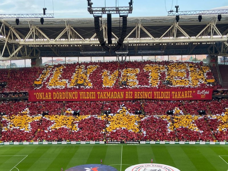 Trendyol Süper Lig'in 38. ve son haftasında sahasında Başakşehir'i konuk eden Galatasaray'da taraftarlar maç öncesi sergiledikleri koreografiyle dikkat çekti.