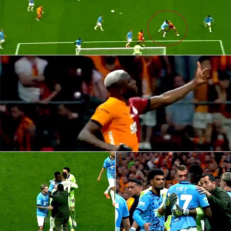 Galatasaray'ın yıldızı Victor Osimhen, Başakşehirli Ousseynou Ba'ya devre arası düdüğü çalar çalmaz eliyle "gel" işareti yaparak soyunma odası koridorlarına çağırdı.
