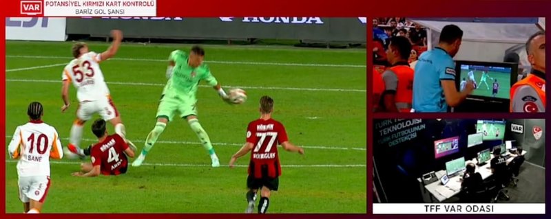 Trendyol Süper Lig'de 2025/26 sezonunun açılış mücadelesi Gaziantep FK-Galatasaray mücadelesine sahne oldu. Karşılaşmanın 64. dakikasında ev sahibi ekip kırmızı kart gördü. Kaleci Burak Bozan'ın ceza sahası dışında topa elle müdahale edip etmediğine dair yapılan VAR incelemesi sonucu hakem Ali Şansalan, Bozan'ın ceza sahası dışında topa elle temas ettiğini tespit ederek 24 yaşındaki kaleciye direkt kırmızı kart gösterdi.