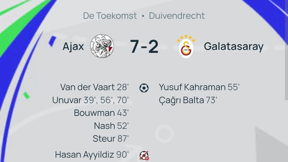 UEFA Gençlik Ligi Lig aşaması 4. hafta maçında G.Saray U19 takımı Ajax'a konuk oldu. Sarı-kırmızılılar sahadan 7-2 gibi farklı bir skorla mağlup ayrılarak ilk 24 yolunda ağır bir yara aldı. Ajax forması giyen Emre Ünüvar'ın hat-trick yaptığı karşılaşmada G.Saray'ın golleri Yusuf Dağhan ve Çağrı Hakan Balta'dan geldi. Sarıkırmızılılar 3 puanla 29. sıraya geriledi.