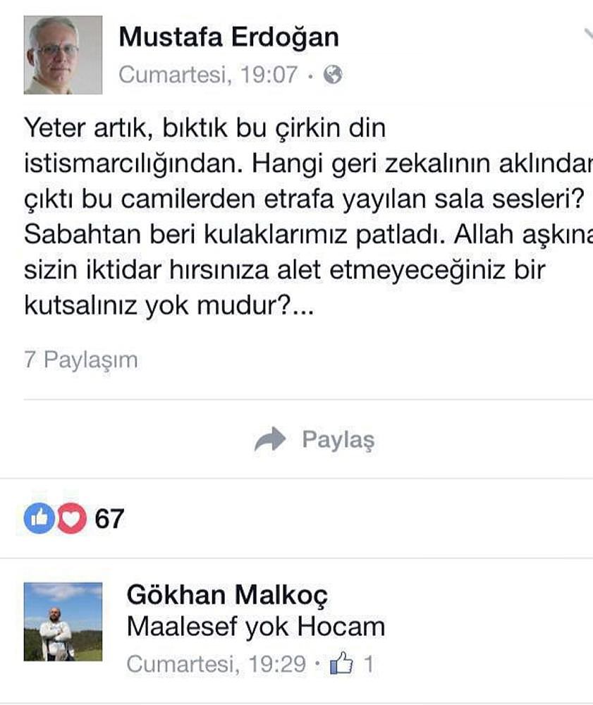 Prof. Dr. Mustafa Erdoğan bu paylaşımı sonrası ertesi gün üniversiteden atılmıştı.