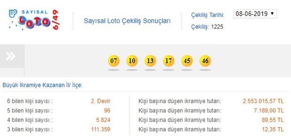 SAYISAL LOTO ÇEKİLİŞ SONUÇLARI İÇİN TIKLAYINIZ