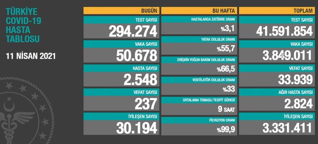 Bakan Koca 11 Nisan Pazar günü 50.678 vakaya rastlandığını açıkladı.