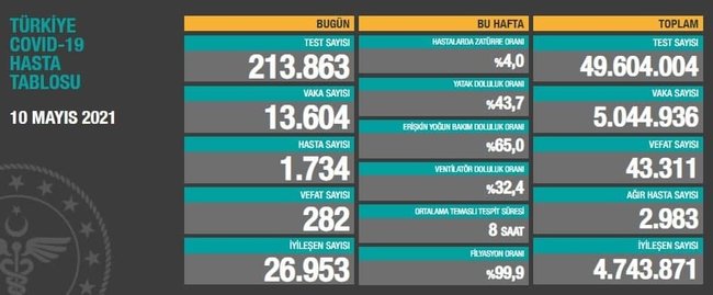 Bakan Koca 10 Mayıs Pazartesi günü 13 bin 604 vakaya rastlandığını açıkladı.