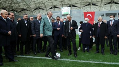 "Herhangi bir sıkıntıya fırsat vermeden Altay ve Altınordu burayı birlikte, kardeşçe kullanacaklar. Zaten spor bu demek. Mustafa hoca diyor ki; 'aynen İngiliz statları gibi'. Bizim stadımız onlardan daha ileri. Bambaşka. Stattaki gençlik merkezinde kitaplarınızla birlikte olacaksınız, çalışmalarınızı da sürdüreceksiniz..." Kurdele kesimi sonrası stadı gezip fotoğraf çektiren Başkan Erdoğan'a Mustafa Denizli ile Altay Başkanı Özgür Ekmekçioğlu forma hediye etti.