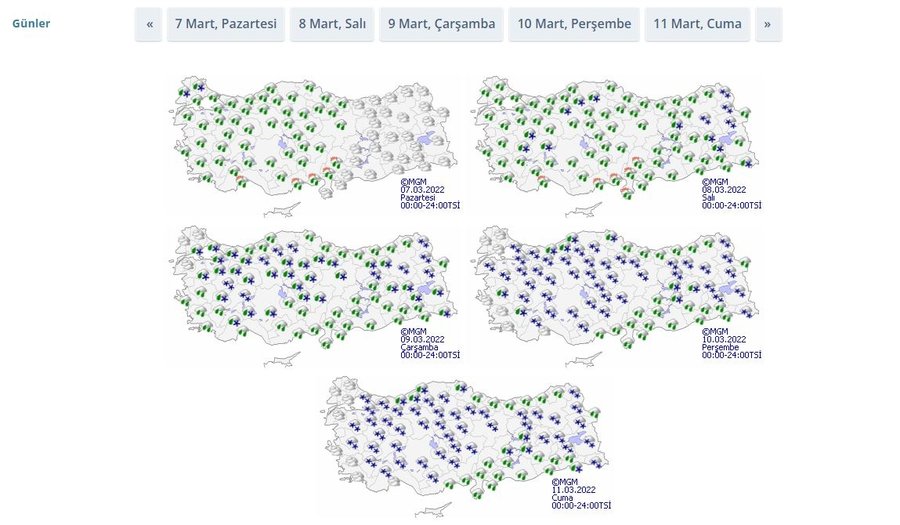 Yapılan bilgilendirmelere göre ülke genelinde sağanak yağmurla başlayıp kar yağışına dönecek bir sürece giriliyor. Özellikle 9 Mart Çarşamba geceden itibaren başlayacak kar yağışı Sibirya'da etkili olan ve Türkiye'ye doğru gelmeye başladığı uzmanlar tarafından dillendirilen Aybar kar fırtınası ile birlikte 10-11 Mart tarihlerinde de etkisini artırarak devam edecek. Bu süreçte hava sıcaklıkları sıfırın altına düşecek. Uzmanlar, kar yağışı sonrası tedbirli olunması konusunda sıkça uyarılarda bulunuyor.