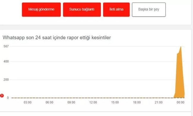 Downdetector'e göre WhatsApp'daki sorunun son durumuna ait grafik:
