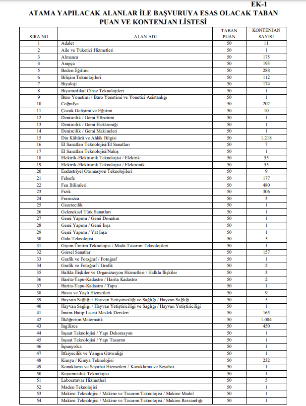 ÖĞRETMEN ATAMA DUYURUSU VE TABAN PUAN - BRANŞ DAĞIŞIMI - KONTENJAN SAYISI İÇİN BURAYA TIKLAYINIZ