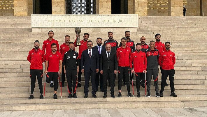 2022 Dünya Kupası'nda şampiyon olan Ampute Futbol Milli Takımı, Anıtkabir'e ziyarette bulundu. Ziyarette, Türkiye Bedensel Engelliler Spor Federasyonu Başkanı Muaz Ergezen, Ampute Milli Takım Teknik Direktörü Osman Çakmak ile sporcular yer aldı. Ulu Önder Atatürk'ü ziyarete gelen vatandaşlar da milli sporculara büyük ilgi gösterdi. Teknik heyet ve sporcuları alkışlayan vatandaşlar, "Türkiye sizinle gurur duyuyor" tezahüratında bulundu. Muaz Ergezen'in Anıtkabir mozolesine çelenk bırakmasının ardından saygı duruşu yapıldı. Ergezen, Anıtkabir Özel Defteri'ne şunları yazdı: "İstiklal Marşı'mızı tüm dünyaya dinlettik. Sporcularımız şanlı bayrağımızı dalgalandırarak, sporda engel olmayacağını gösterdiler. Tarihimizden ilham alarak sayısız başarılar ile huzuruna tekrar geleceğiz.