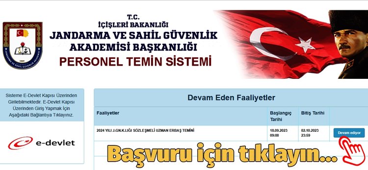 Başvuruların başlama ve bitiş saatleri, temini yapılacak sözleşmeli uzman erbaş branşları, alım şartları ve diğer detaylar, "https://vatandas.jandarma.gov.tr" ve "www.jsga.edu.tr" internet sitelerinde yayımlanacak "2024 Yılı Jandarma Genel Komutanlığı Sözleşmeli Uzman Erbaş Temini" kılavuzunda belirtilecek.