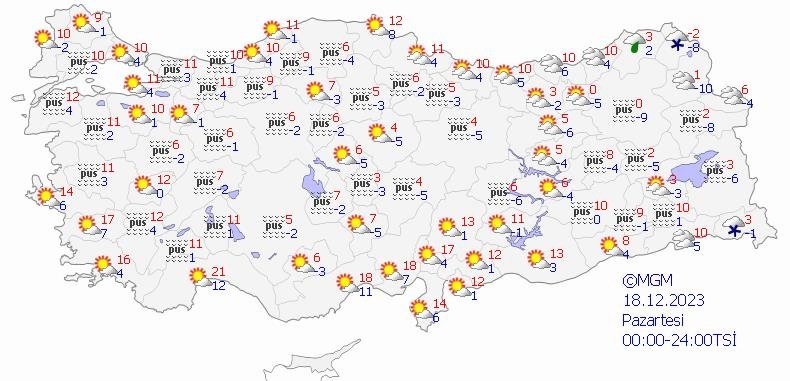 18 ARALIK PAZARTESİ HAVA DURUMU