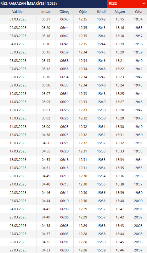 RİZE 2025 İMSAKİYE İÇİN TIKLAYIN