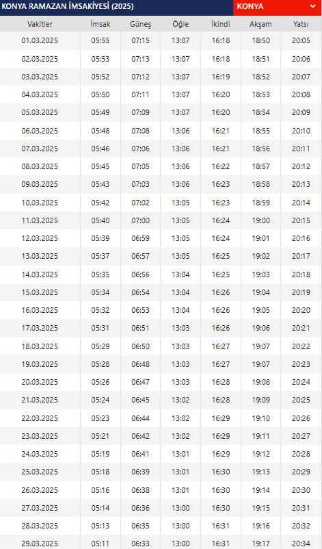 KONYA 2025 İMSAKİYE İÇİN TIKLAYIN