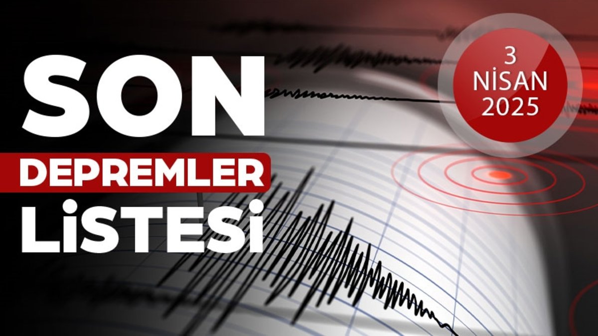 Deprem 3 Nisan Perşembe | Deprem riski ile her an karşı karşıya olan fay hatları üzerindeki ülkemizde, sarsıntıların şiddeti, olduğu yer gibi teknik bilgiler iki farklı kaynak tarafından paylaşılıyor. AFAD ve Kandilli Rasathanesi'nin hesaplamalarıyla vatandaşlar, ülkede olan depremleri, şiddetini ve artçıları anlık olarak öğrenebilirken 3 Nisan 2025 AFAD, Kandilli Rasathanesi son depremler listesini sizler için derledik.