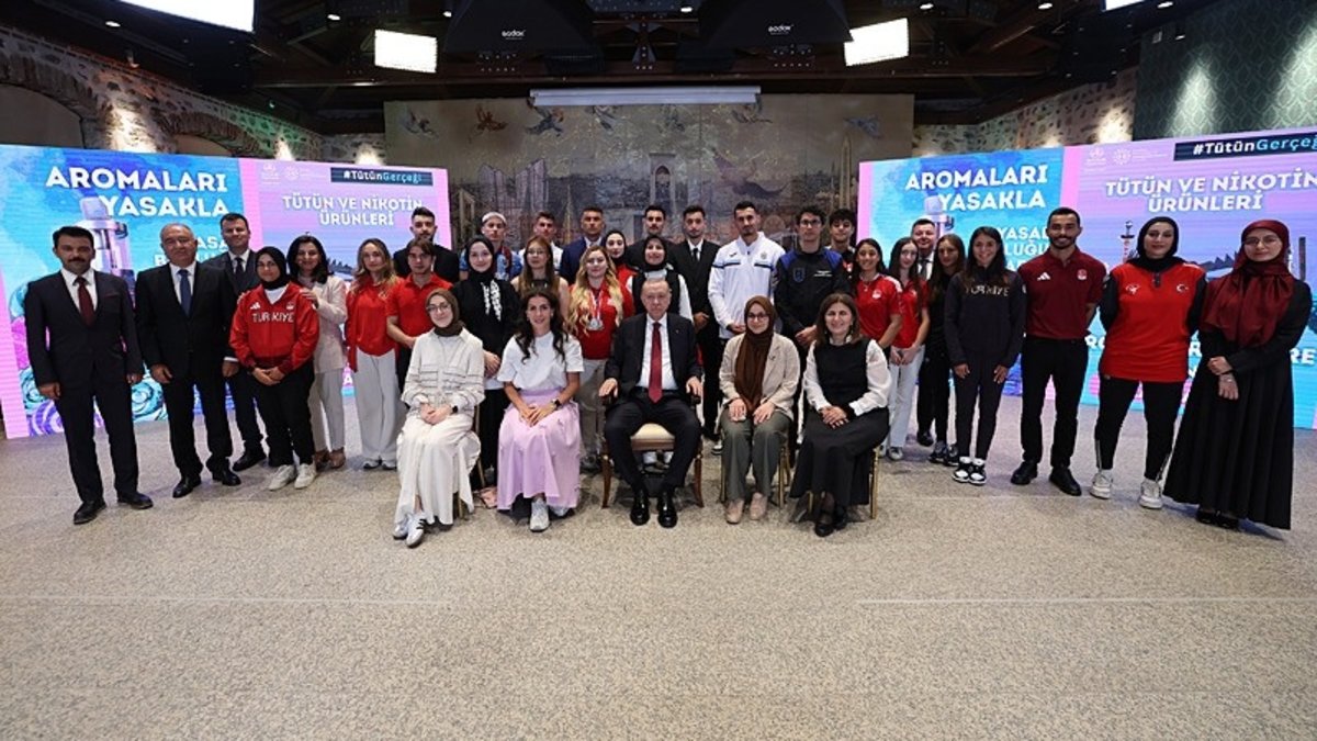 Cumhurbaşkanı Recep Tayyip Erdoğan, Dolmabahçe Çalışma Ofisi'nde gerçekleştirilen, "Tütün Ürünlerinin Zararlarının Önlenmesi ve Kontrolü Hakkında Kanunun Yıl Dönümünde Gençlerle Buluşma" programında, sporcular ve gençlerle bir araya geldi. Buradaki konuşmasına, milli sporcular ile TEKNOFEST kuşağının öncü neferleri olan gençleri selamlayarak başlayan Erdoğan, Tütün Ürünlerinin Zararlarının Önlenmesi ve Kontrolü Hakkında Kanun'un yıl dönümünde katılımcılarla bir arada olmanın bahtiyarlığını yaşadığını söyledi. Erdoğan, katılımcıların vasıtasıyla 81 ilin yanı sıra yurt dışında ve gönül coğrafyalarında yaşayan tüm gençlere selamlarını, sevgilerini gönderdiğini ifade etti.