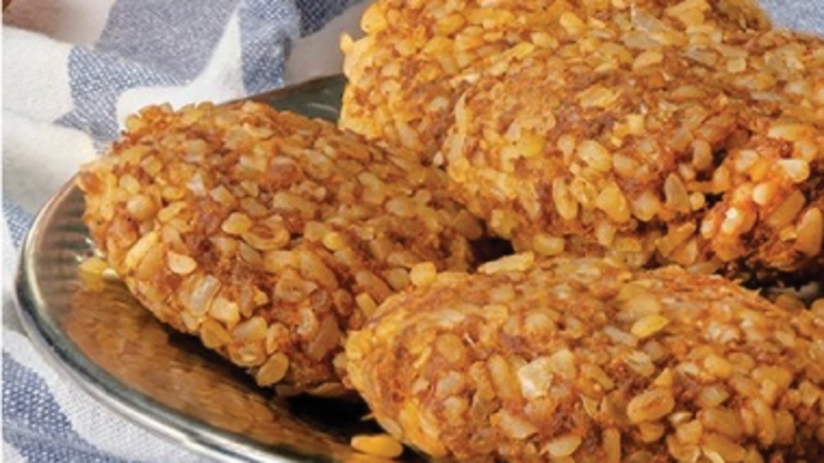 Hazırlanan karışımdan ceviz büyüklüğünde köfteler yapılarak yassı şekil verilir.