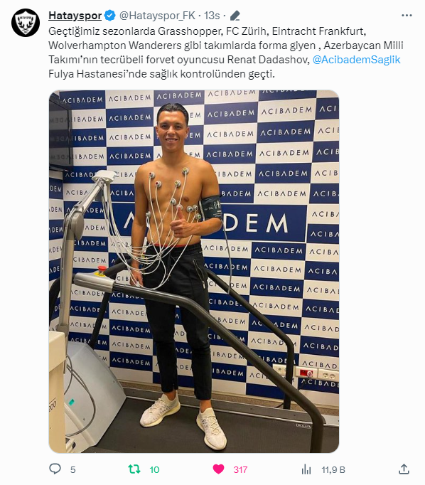 Trendyol Süper Lig ekiplerinden Hatayspor, Renat Dadashov transferini açıkladı.