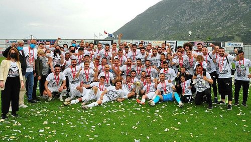 MİSLİ.com 2'nci Lig Beyaz Grup'ta namağlup şampiyon olarak TFF 1'inci Lig'e yükselen Manisa Futbol Kulübü, kupasını Gümüşhanespor'u 6-0 mağlup ettiği sezonun son iç saha maçından sonra aldı. Ligde çıktığı 35 maçta bileği hiç bükülmeyip Sarıyer'le deplasmanda oynayacağı son sınav öncesi 83 puana ulaşan siyah-beyazlı ekip, kupasına evinde kavuştu. Şampiyonluk maçında Mümin Özkasap Tesisleri siyah-beyaz balonlar ve bayraklarla süslendi. Manisa FK'lı futbolcular, maç sonrası sahada oluşturulan platforma isimleri tek tek anons edilerek çıktı. Bazı futbolcular kupa törenine çocuklarıyla birlikte katılırken, tüm takım şampiyonluk tişörtleri giydi. Koronavirüs pandemisi nedeniyle madalya töreninde madalyalar futbolcuların boyunlarına takılmayıp ellerine verildi.
