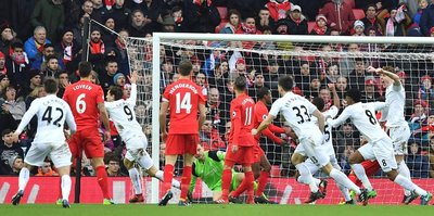 Liverpool evinde konuk ettiği Swansea City'e 3-2 yenildi.