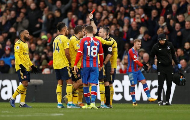 Arsenal'in yıldız golcüsü Aubameyang, 67. dakikada gördüğü kırmızı kart ile takımını 10 kişi bıraktı.