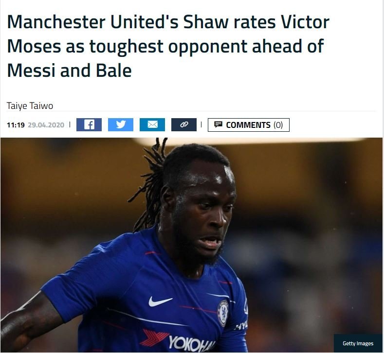Inter'de forma giyen Nijeryalı oyuncuya övgüler yağdıran Shaw, "17 yaşındayken Southampton forması giydiğim dönemde Chelsea ile karşılaşmıştık. Moses beni oldukça zorladı. İnsanlar şaka yaptığımı düşünebilir ancak en zorlu maçlarımdan biri Moses'a karşıydı" ifadelerini kullandı.