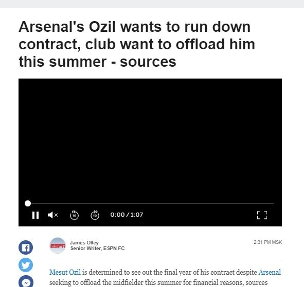 ESPN'in haberinde göre Arsenal, Mesut Özil ile maliyetinden dolayı yolları ayırmak istiyor. Ancak Mesut, sözleşmesinin sonuna kadar kalmaya kararlı.