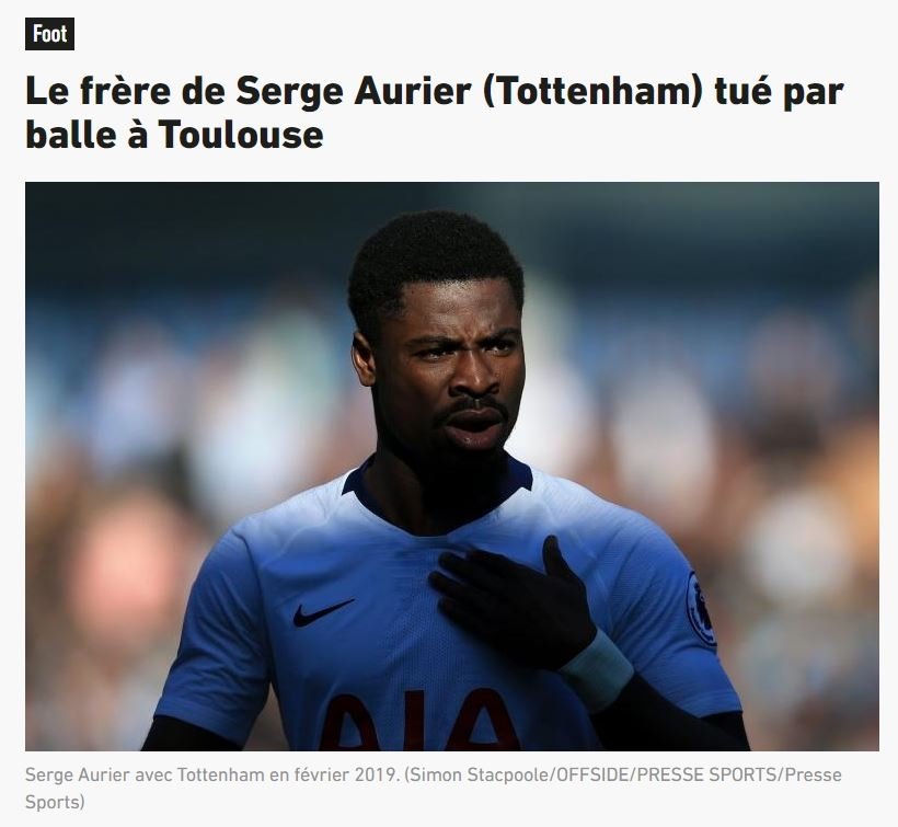 İngiltere Premier Lig takımlarından Tottenham'da forma giyen Serge Aurier'nin kendisinden bir yaş küçük erkek kardeşi Christopher Aurier uğradığı silahlı saldırının ardından hayatını kaybetti.