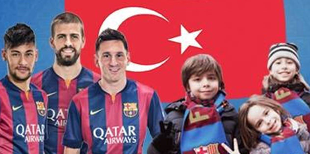 Barcelona'nın sosyal paylaşım sitesi Facebook resmi hesabında, Türk bayrağı, Lionel Messi, Neymar ve Gerard Pique ile 3 küçük taraftarının yer aldığı bir fotoğraf paylaşıldı.