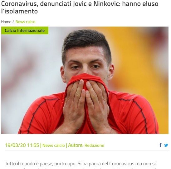 Bu bağlamda önlemlerini hızlandıran Sırbistan'da, skandal bir olay yaşandı. Aktarılan bilgilere göre Real Madrid'in golcüsü Luka Jovic ve Ascoli'de forma giyen Nikola Ninkovic, bu yasağı deldi.