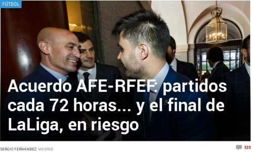 İspanya Futbol Federasyonu'nda düzenlenen takip komisyonu toplantısında taraflar her takımın 72 saatte bir maç yapması üzerinde anlaştı.
