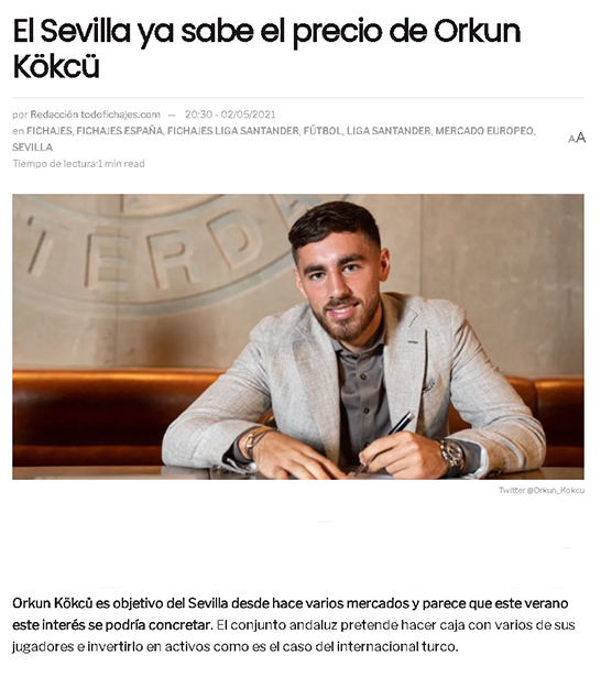 Sevilla'nın Orkun'u geleceğe yatırım olarak düşündüğü ve genç yıldızı parlatarak ileride daha yüksek bir bonservis bedeliyle satmayı planladığı da haberde yer aldı.
