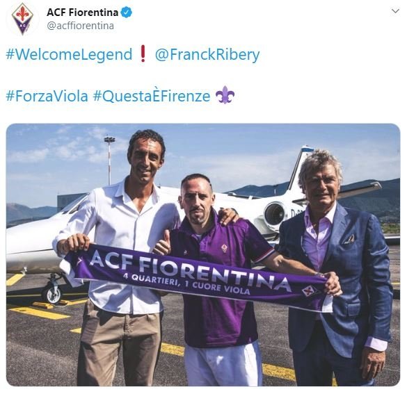 Kulüpten resmi açıklama geldi. Fiorentina, Ribery'e "Hoş geldin efsane" diyerek transferi duyurdu.