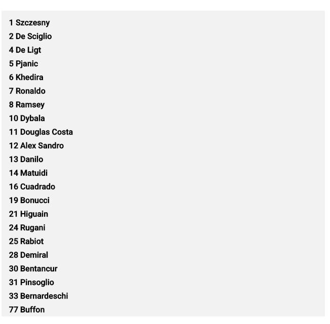 İtalya Serie A takımlarından Juventus'un, Şampiyonlar Ligi'nde mücadele edecek kadrosu resmen açıklandı. Kadroda milli futbolcu Merih Demiral da yer aldı. Teknik direktör Maurizio Sarri'nin belirlediği listede, Türk asıllı Alman futbolcu Emre Can ile takımın tecrübeli Hırvat golcüsü Mario Mandzukic kadro dışı bırakıldı. İki oyuncu, İtalyan temsilcisinin ligde ve İtalya Kupası'nda oynayacakları maçta forma giyebilecek ancak takımın Avrupa macerasında sahada olamayacaklar.