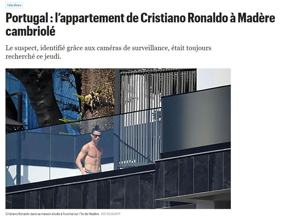 Portekiz basınında yer alan haberlere göre yıldız futbolcunun, üst dairesinde yaşadığı daireye giren hırsız oyuncunun 200 Euro değerindeki imzalı Juventus formasını ve birkaç değersiz eşyasını çaldı. Apartmana giren hırsız, binada bulunan kameralar sayesinde polis ekipleri tarafından tespit edildi.