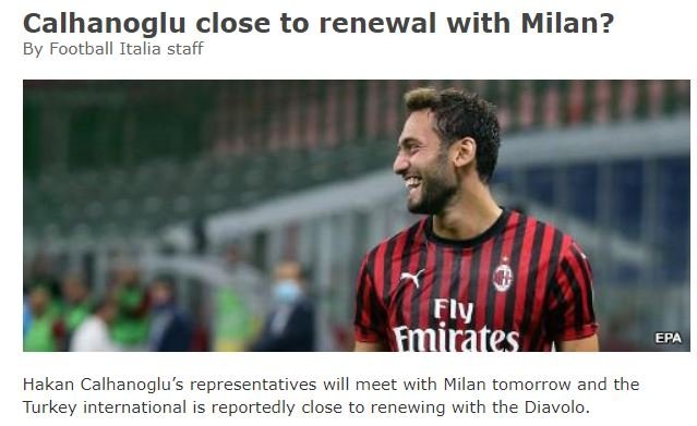 Milan'ın hem Serie A hem de Avrupa Ligi'ndeki başarısında büyük pay sahibi olan orta saha oyuncusu için kulüp sözleşme uzatma teklifi getirmiş ancak maaşta anlaşılamamıştı. İtalyan basınından Football Italia'da yer alan habere göre Hakan Çalhanoğlu'nun menajeri, bugün kulüp yöneticileri ile bir kez daha kritik bir görüşme gerçekleştirecek. İki tarafın anlaşmaya yakın olduğu iddia ediliyor.