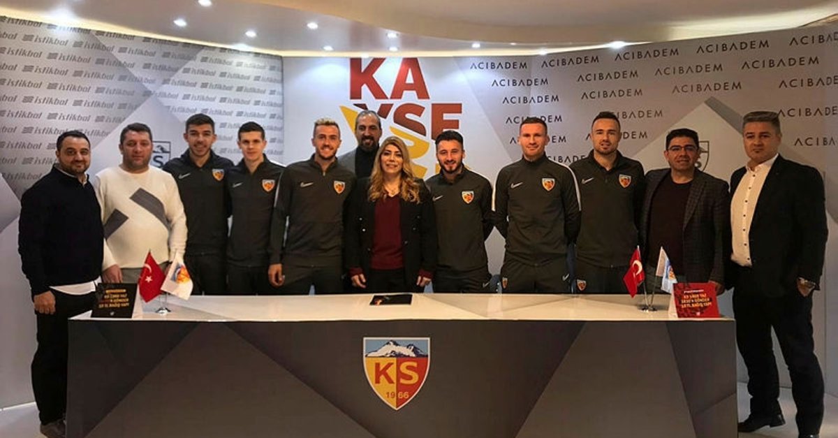 Kayserispor Başkanı Berna Gözbaşı'nın da katıldığı törenle yeni transferler, kendilerini sarı-kırmızılı renklere bağlayan sözleşmeye imza attı.
