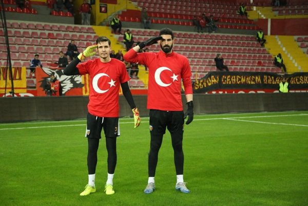 Türk bayrağını göğüslerinde taşıyan sarı-kırmızılı futbolcular, objektiflere de asker selamı verdi. Maç öncesinde İdlib saldırısında şehit düşen askerlerin isimleri tek tek okundu ve "burada" sloganları atıldı.