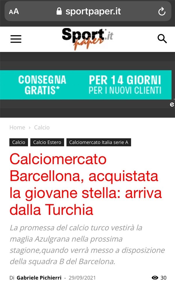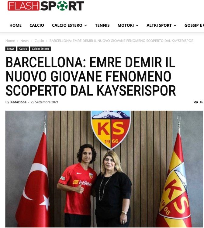 İtalyan medyası, genç yaşta keşfedilip Avrupa devlerinden Barcelona ile anlaşan Yukatel Kayserispor'un 17 yaşındaki futbolcusu Emre Demir'e geniş yer ayırdı.
