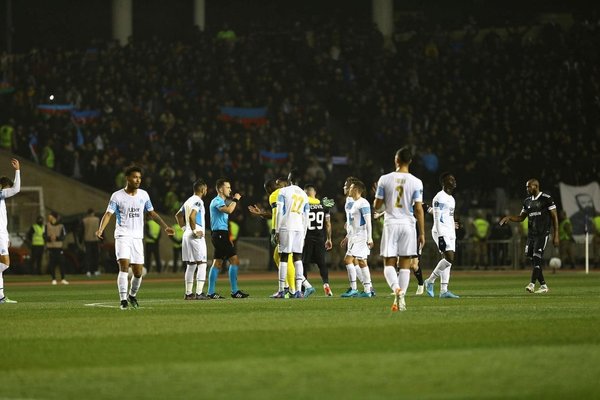Bakü'de Tofig Bahramov Stadı'nda oynanan karşılaşmanın 34. dakikasında Karabağlı futbolcu İbrahima Wadji topu rakip kaleye gönderdi. Maçı 1-0 üstünlükle götüren Olimpik Marsilyalı oyuncular golün elle atıldığı gerekçesiyle hakeme itiraz etti.