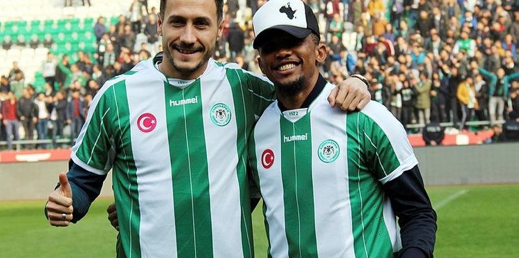 BAŞKAN Yılmaz, Eto'o'nun 1.5+1 yıllık kontratındaki gol sayısı maddesiyle ilgili, "Eto'o yeter ki 28 gol atsın. Biz sözleşmesini 1 yıl daha uzatalım. 28 gole katkı sağlayan bir oyuncuyu biz sırtımızda taşırız. Jahovic de 20 ve Eto'o'da 28 gol barajlarını da koyarak Konyaspor'un bir nevi geleceğini kurtarmış olduk" diye konuştu.