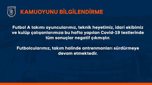 Süper Lig ekiplerinden Medipol Başakşehir'den sevindiren haber geldi... Turuncu mavililer, yaptığı resmi açıklamada kulüp içerisinde corona virüsü bulgusu bulunan birine rastlanmadığını açıkladı.